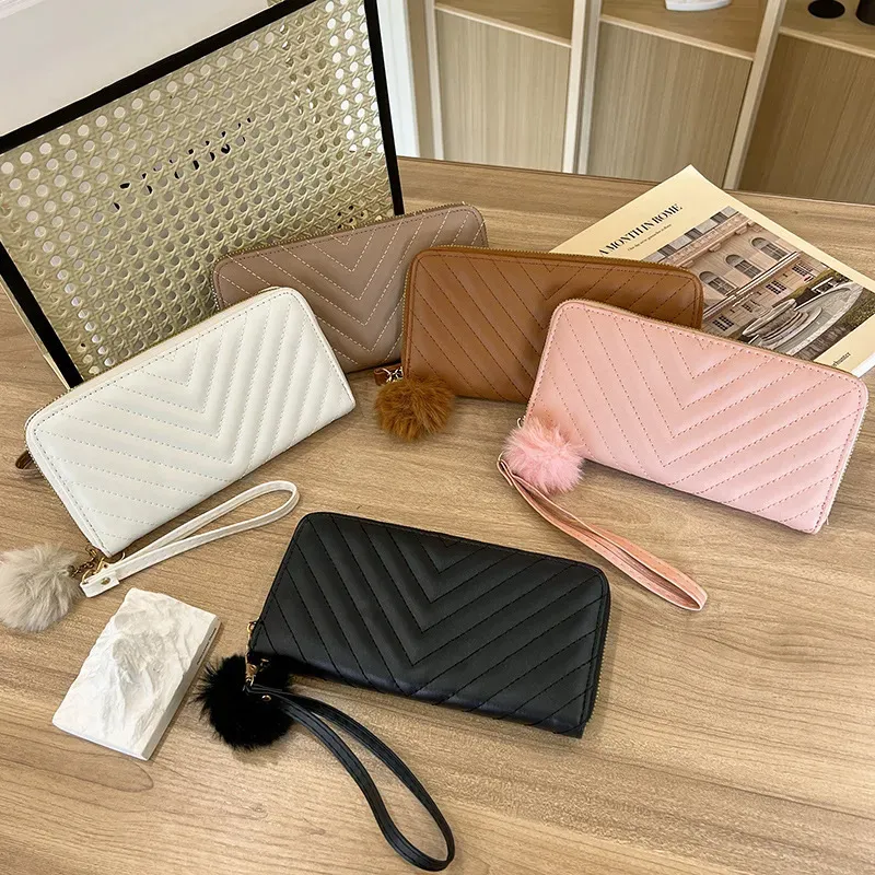 Women Simple Solid Color Leather Long Purses