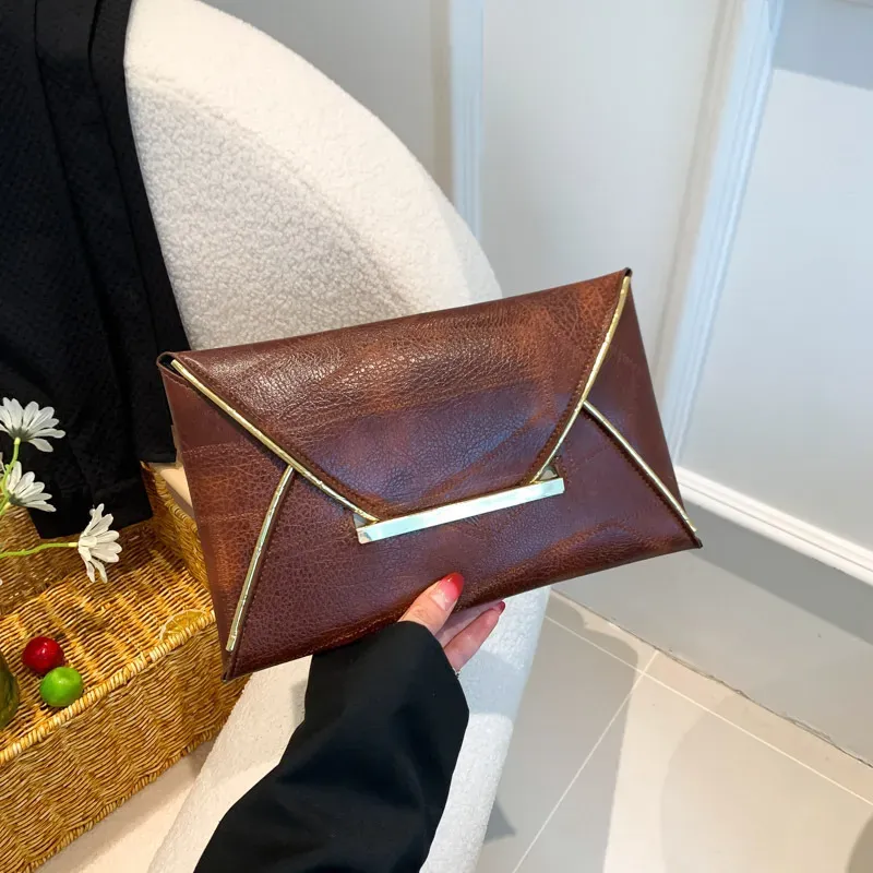 Women Simple Solid Color Flap Metal Latch Large Capacity Rectangular Purses