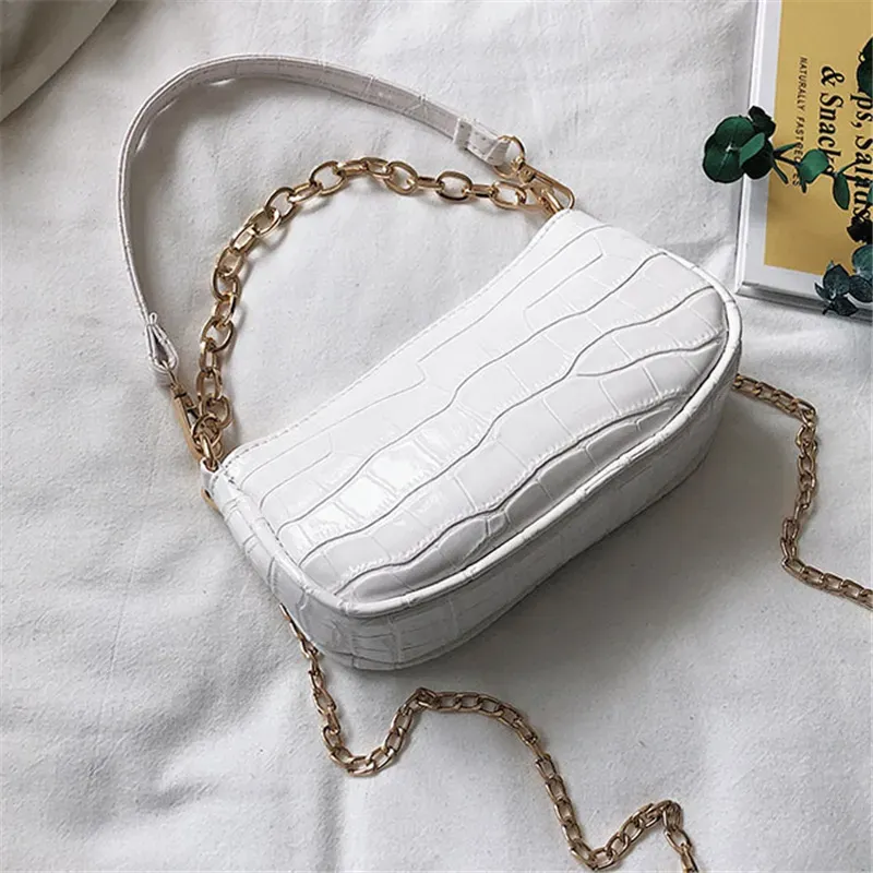Women Fashion Solid Color Crocodile Pattern Metal Chain Shoulder Bag
