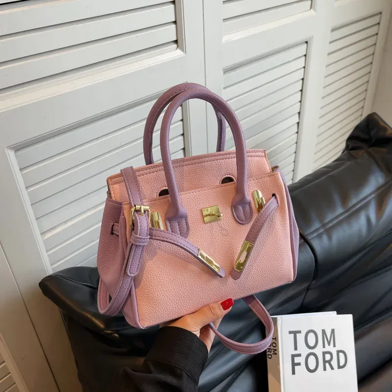 Women Fashion Solid Color Lock Handle Bag