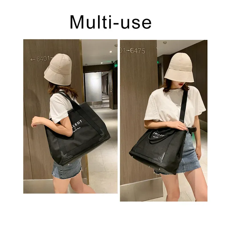 Women Casual Design Solid Color Canvas Large Capacity Shoulder Handle Bag
