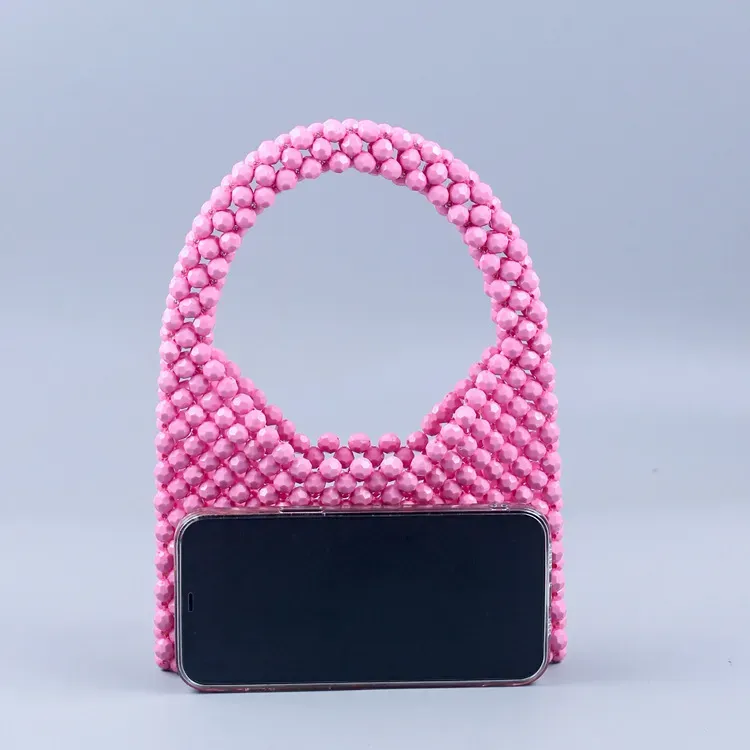 Women Fashion Handmade Beaded Woven Acrylic Pearl Handle Evening Bag