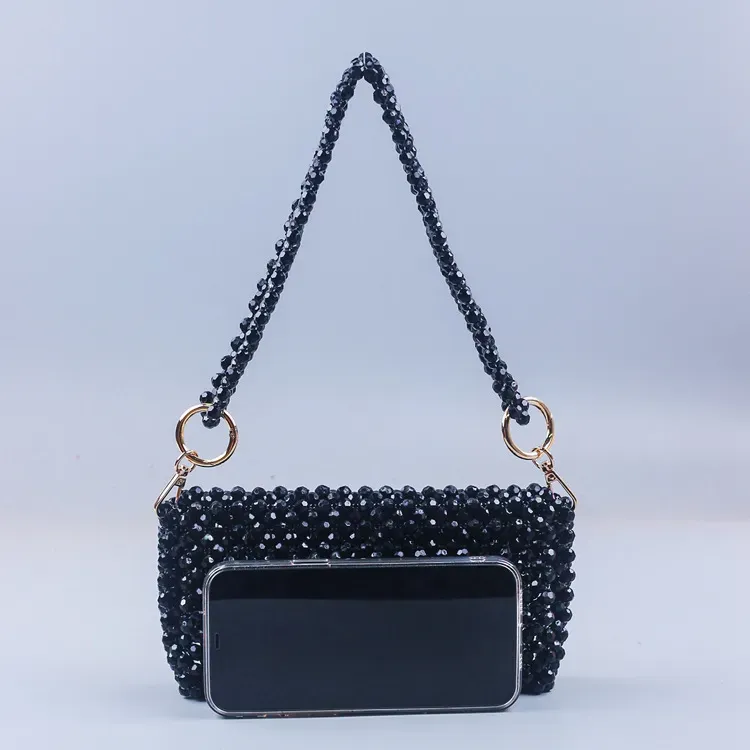 Women Fashion Creative Hand-Woven Beaded Handle Evening Bag