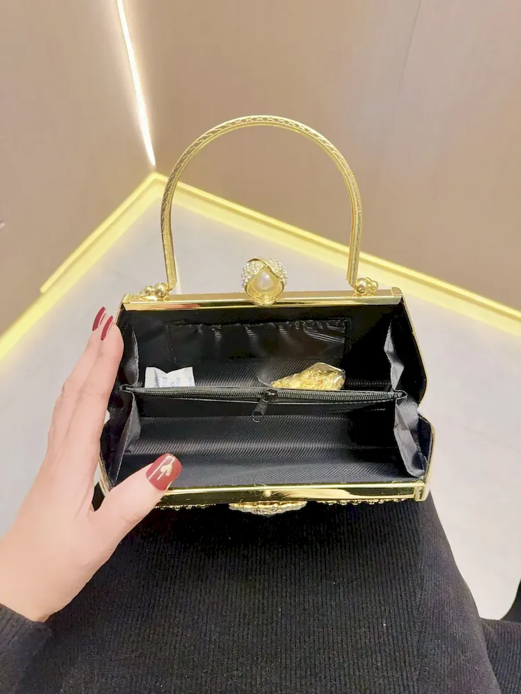 Women Fashion Elegant Pearl Rhinestone Handle Evening Bag