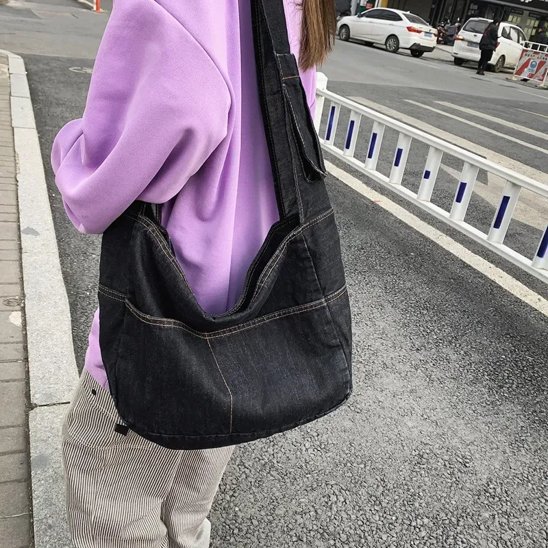 Women Fashionable Large Capacity Denim Shoulder Tote Bag