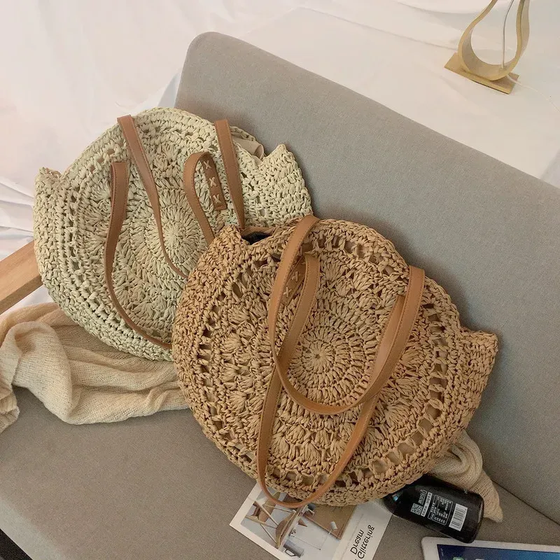 Women Fashionable Simple Vacation Beach Large Capacity Straw Woven Tote Bag