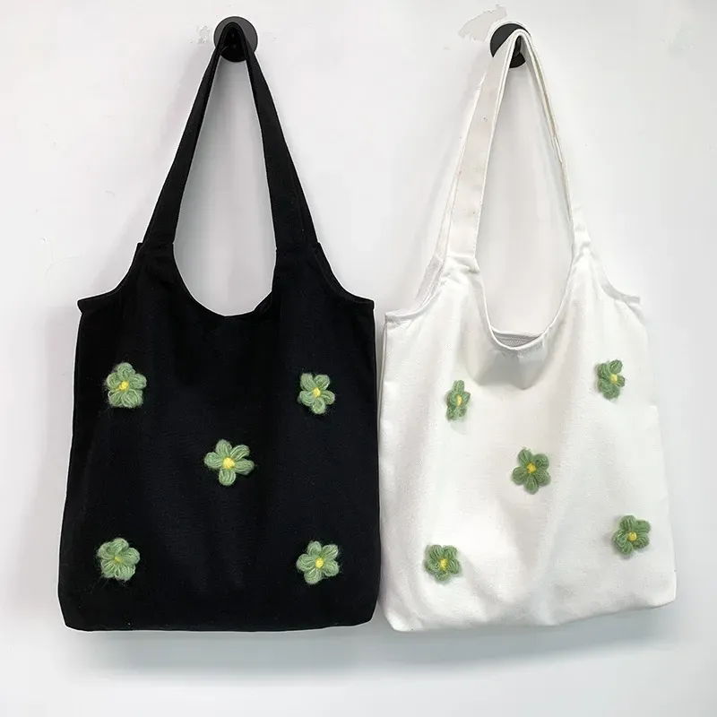Women Fashionable Stereo Floral Large Capacity Canvas Tote Bag