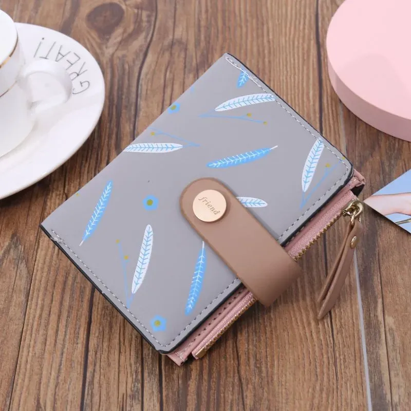 Women’S Fashion Leaf Floral Pattern Buckle Zipper Wallet