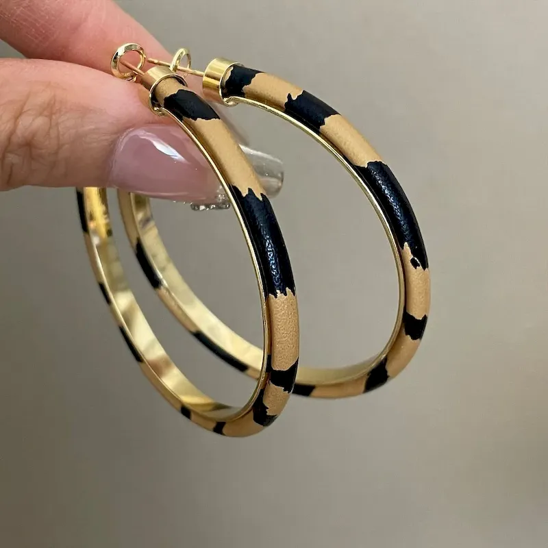 Wholesale Women Fashion Retro Leopard Leather Big Ring Earrings