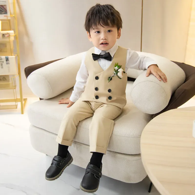 Wholesale Boys’ Fashion Solid Color Lapel Long-Sleeve Blouse Tank Top Slim Fit Pants Five-Piece Set