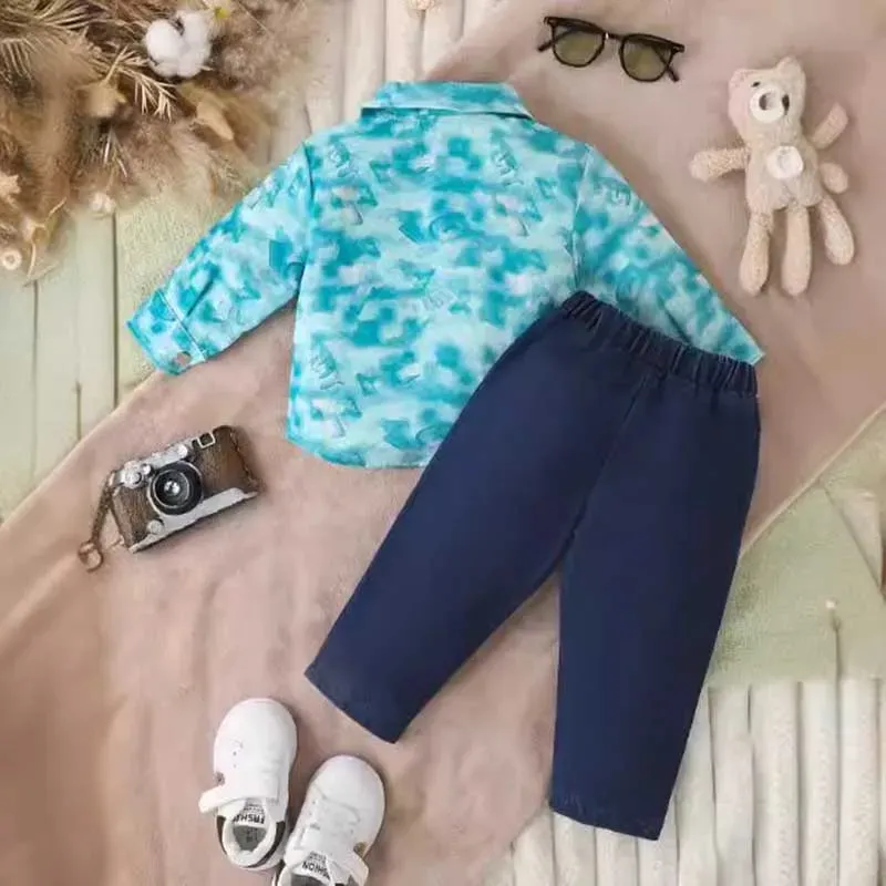 Wholesale Kids Baby Boys Fashion Casual Tie-Dye Long Sleeve Lapel Shacket Trousers Sets