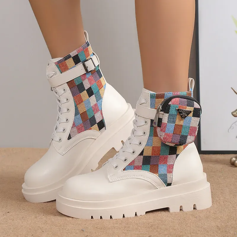 Women Fashion Lace Up Round Toe Platform Short Boots