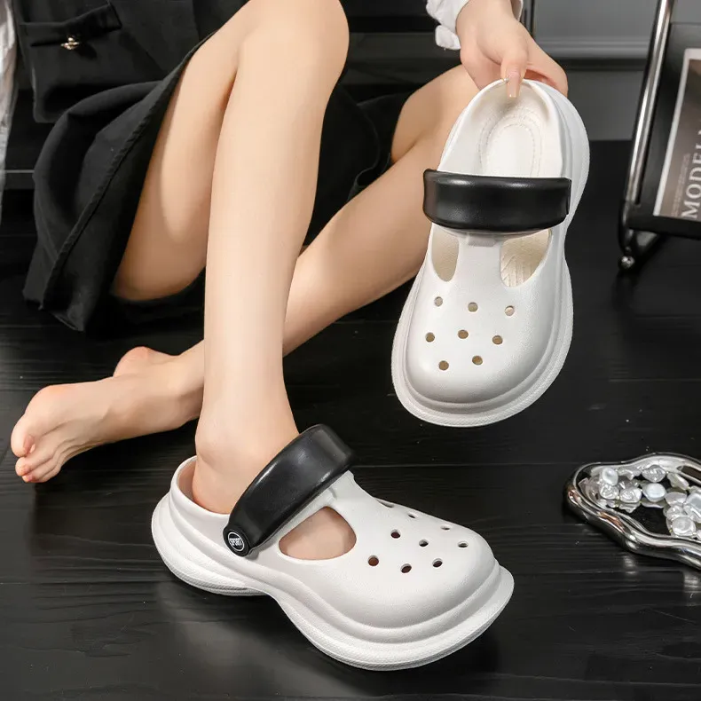 Women Fashion Casual Contrast Color Thick-Soled Non-Slip Hole Shoes Slippers