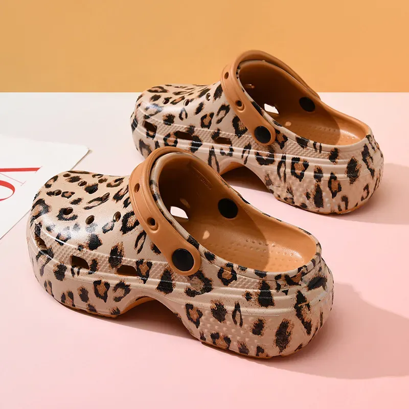 Women Fashion Casual Leopard Thick-Soled Non-Slip Hole Shoes Slippers