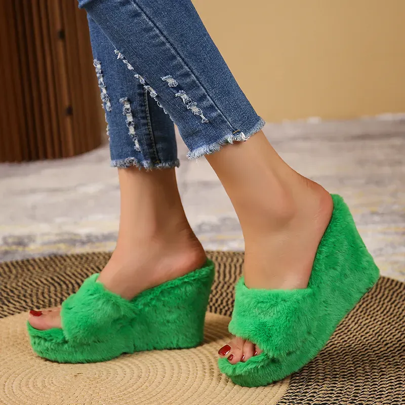 Women Fashion Casual Plush Round-Toe Platform Wedge Sandals