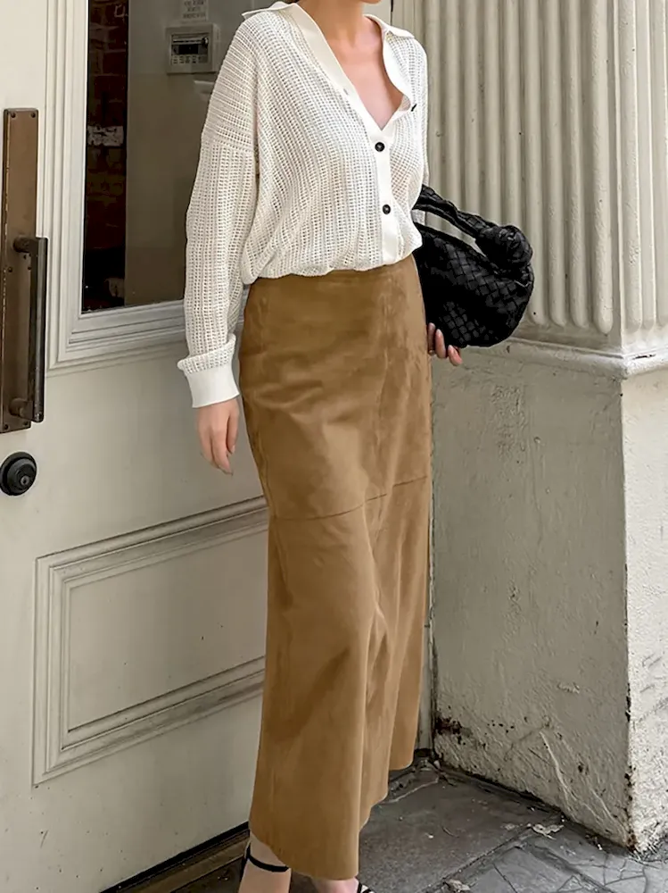 Summer Women Solid Color Gothic Punk High Waist Slim Fashion Slit Skirt