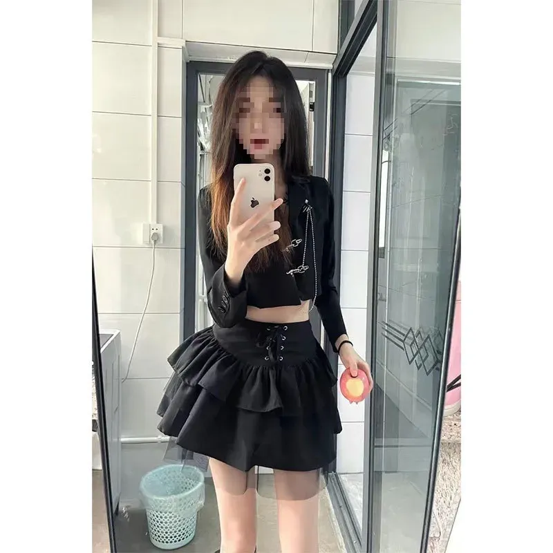 Women Fashion Dark Gothic Multi-Layer Stitching Split Fishtail Skirt