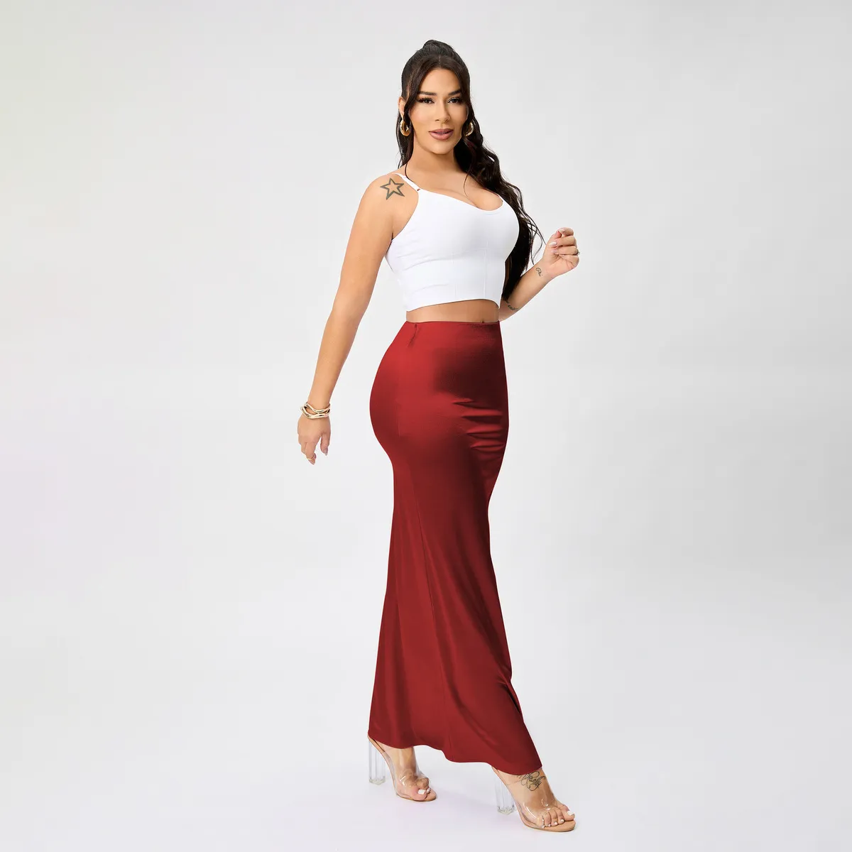 Women Fashion Elegant Solid Color Tight A- Line Skirt