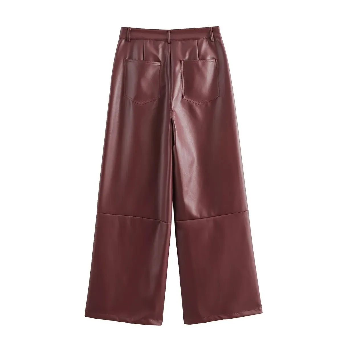 Women Fashion Casual High Waist Loose Leather Stitching Wide-Leg Pants