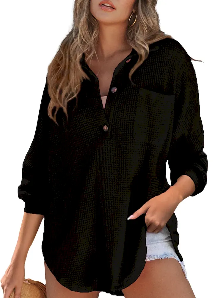 Autumn And Winter Women Fashion Waffle Knit Blank Sweatshirt