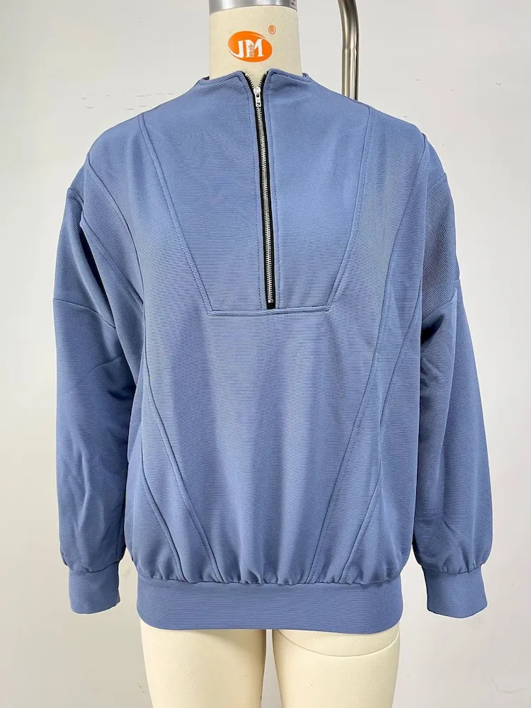 Autumn Winter Women Casual Solid Color Zipper Long Sleeve Blank Sweatshirt