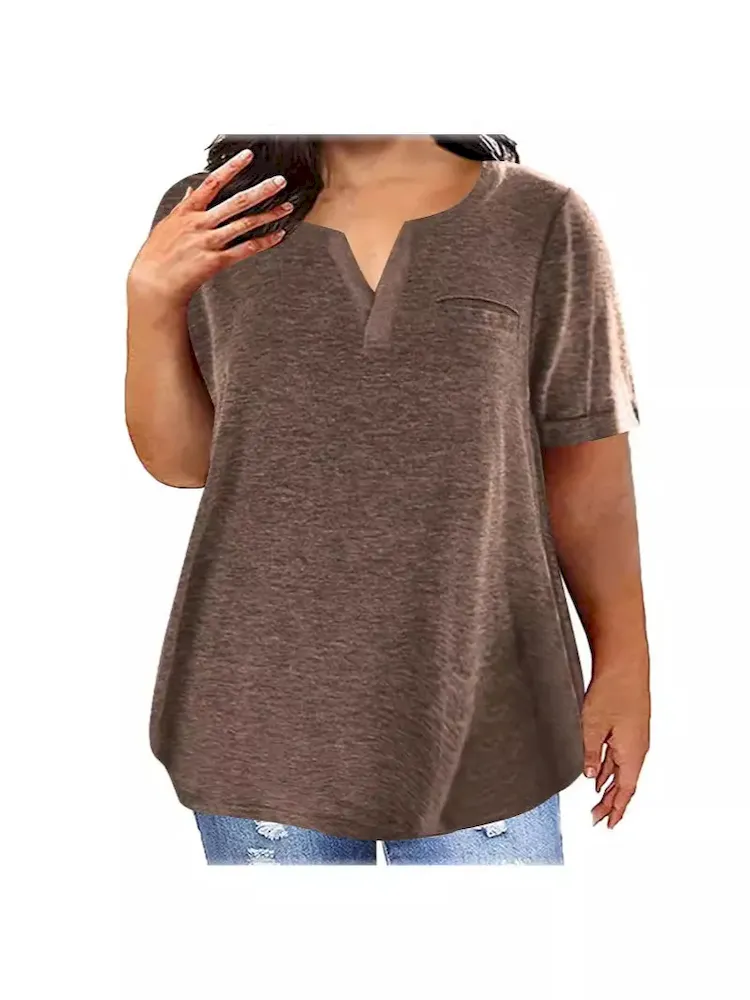 Women Fashion Casual Plus Size Solid Color V-Neck Short-Sleeve T-Shirt