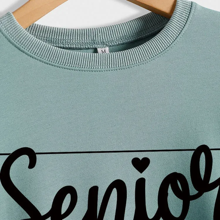 Women Casual Solid Color 2025 Letter Print Round Neck Long Sleeve Sweatshirt