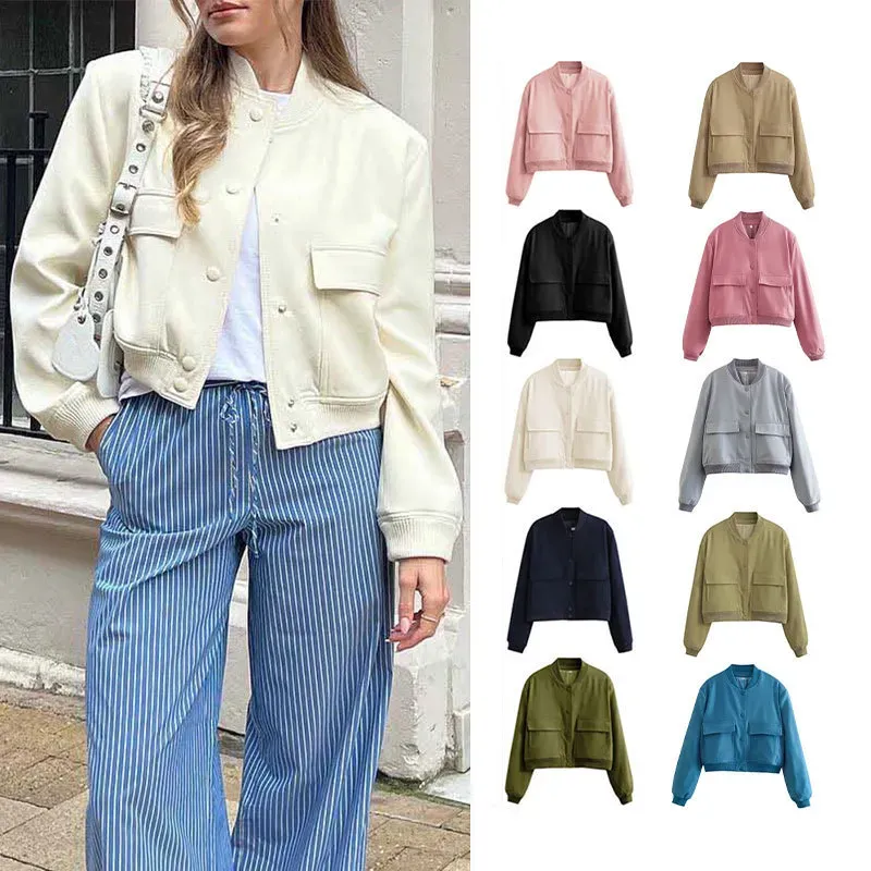 Women Fashion Casual Solid Color Pocket Long Sleeve Jacket