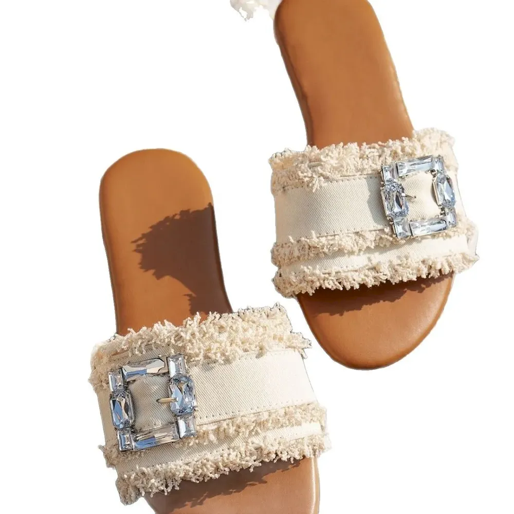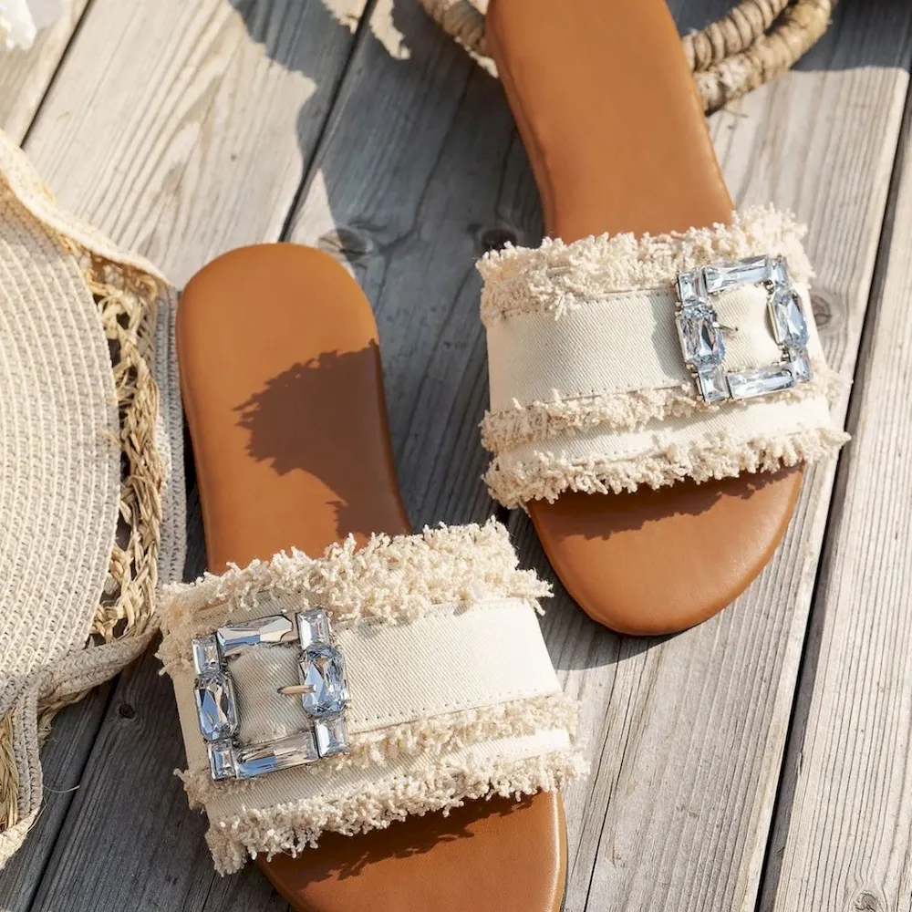 Casual Square Buckle Rhinestone Flat Slippers – Premium Fashion Apparel for Modern Life