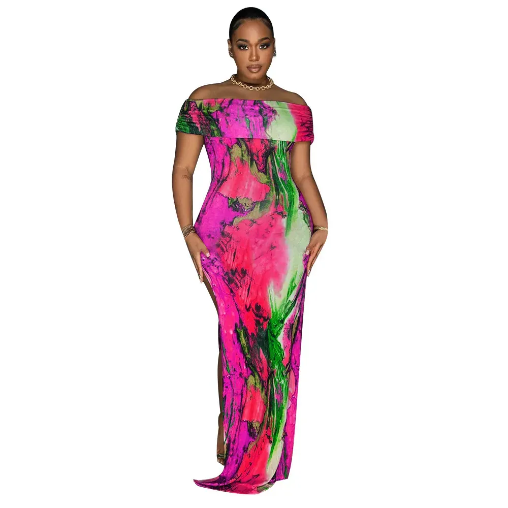 Fashion Women Off-Shoulder Sexy High Split Tie Dye Print Maxi Dress – Premium Fashion Apparel for Modern Life
