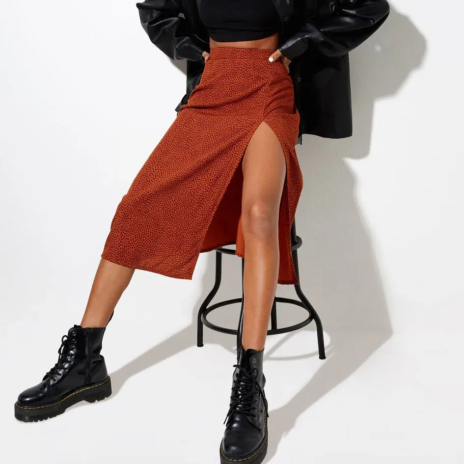 Floral Leopard Printed High Waist Stretch Split A- Line Skirt – Premium Fashion Apparel for Modern Life