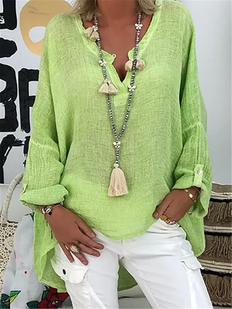 Plus Size Solid Long Sleeve Women Loose Casual V Neck Blouse – Premium Fashion Apparel for Modern Life