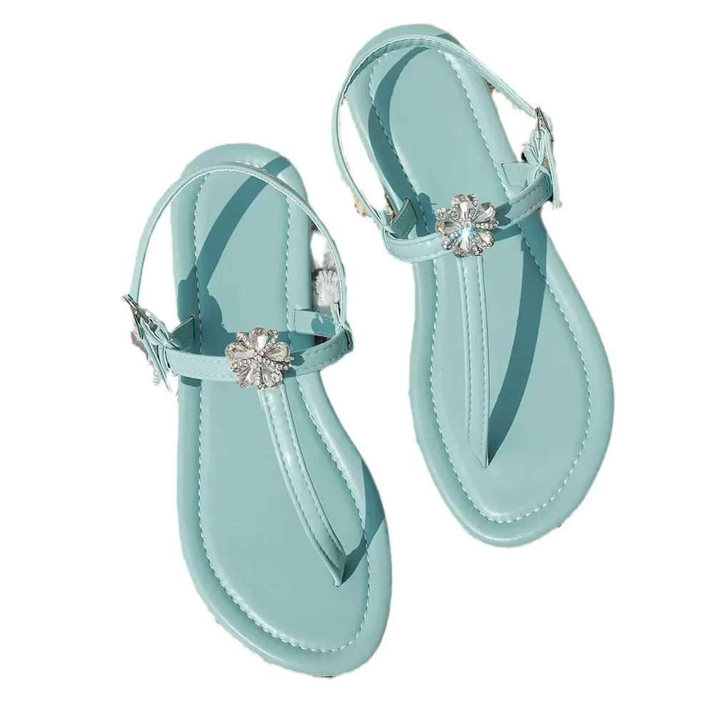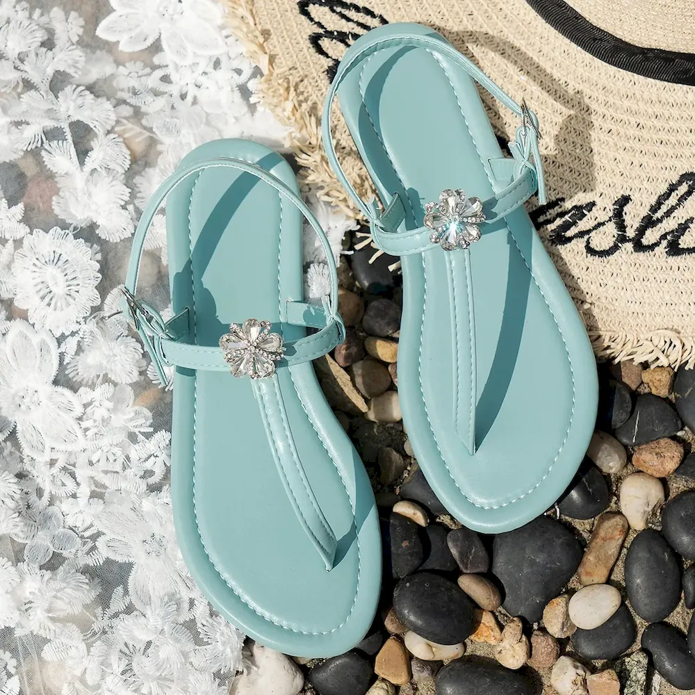 Plus Size Women’S Fashion Rhinestone Floral Beach Flat Slippers – Premium Fashion Apparel for Modern Life
