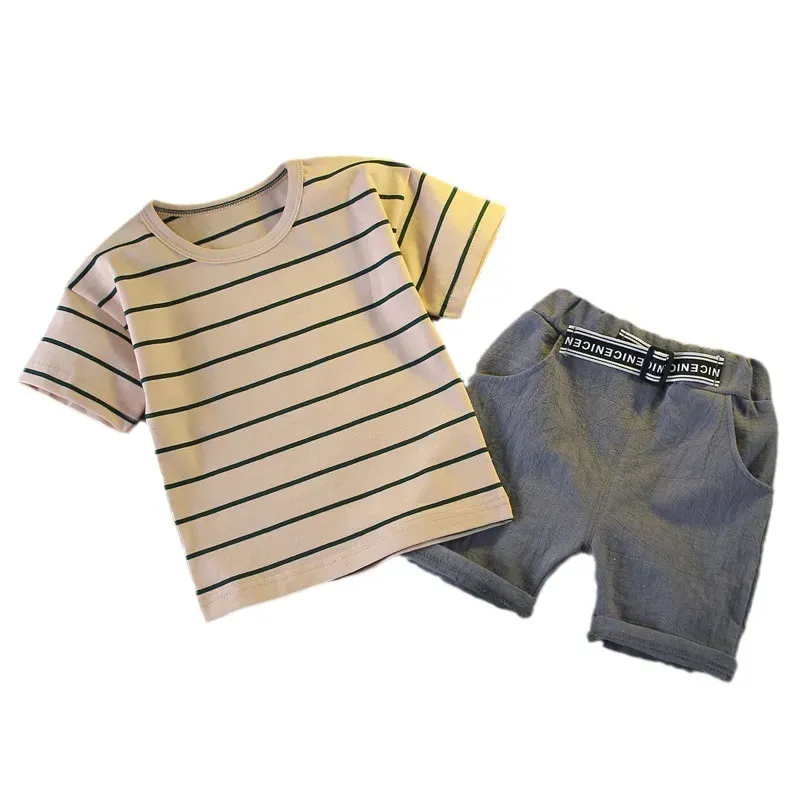 Wholesale Kids Toddler Boys Girls Casual Solid Color Short Sleeve T-Shirt Trousers Sets