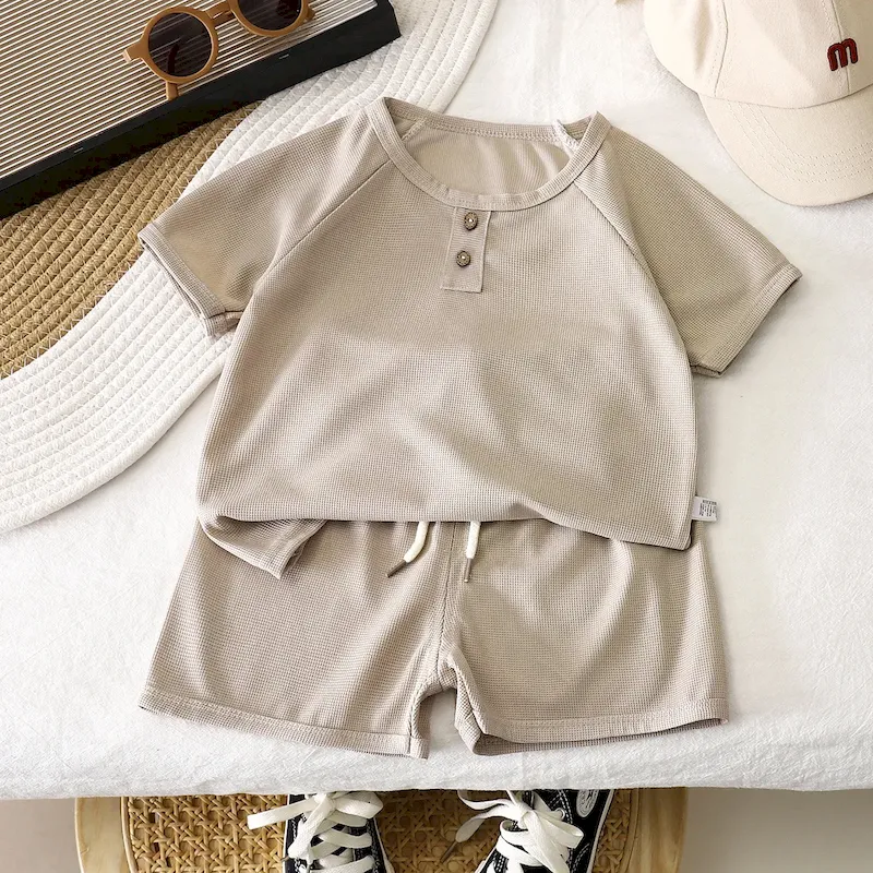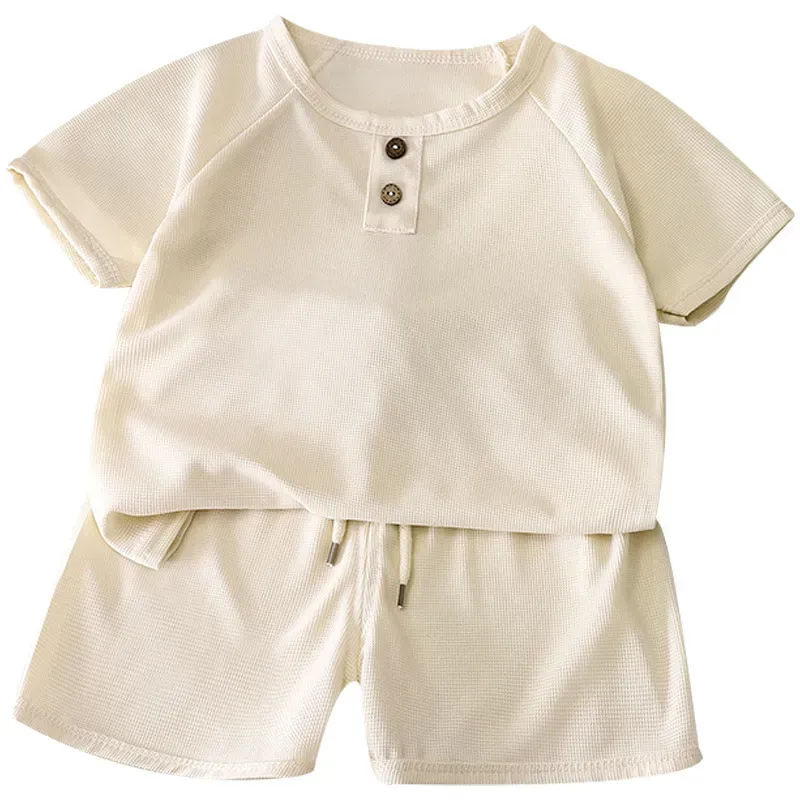 Wholesale Kids Toddler Boys Girls Casual Solid Color Short Sleeve T-Shirt Trousers Sets