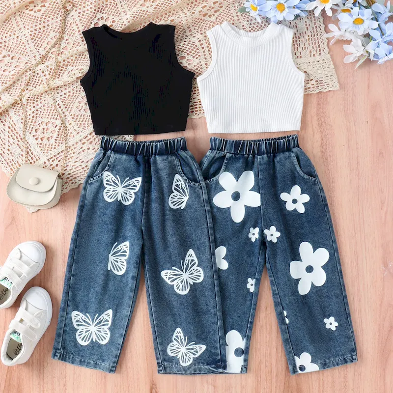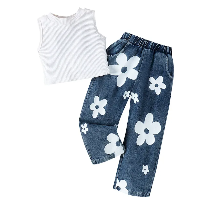 Wholesale Kids Toddler Girls Casual Cute Solid Color Stripe Camisole Trousers Sets