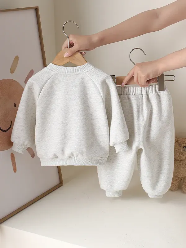 Wholesale Kids Boys And Girls Fashion Casual Solid Color Half-Zip Fleece-Lined Sweatshirt