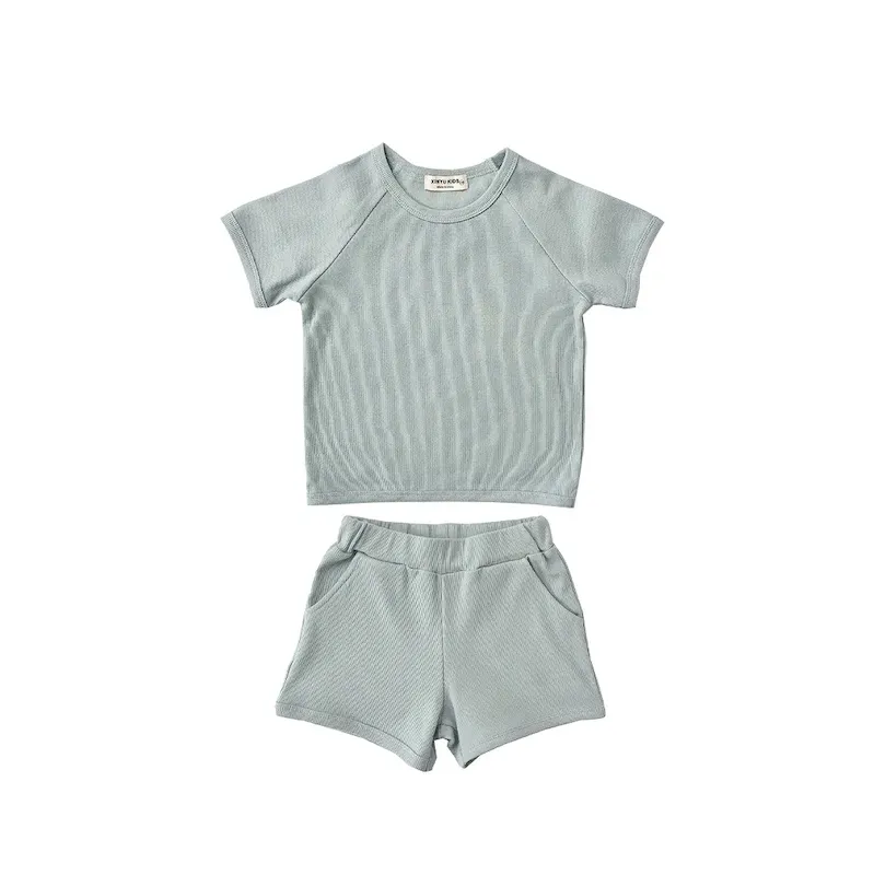 Wholesale Kids Toddler Boys Girls Casual Solid Color Short Sleeve T-Shirt Trousers Sets