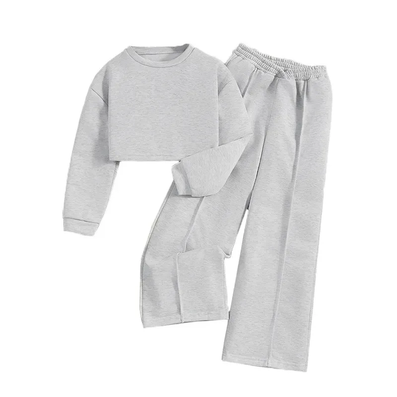Wholesale Kids Toddler Big Boys Girls Casual Cute Solid Color Plush Long Sleeve Hoodies Trousers Set