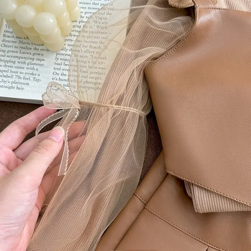 Wholesale Kids Girls Fashion Elegant Solid Color Lace Bowknot Mesh Sleeveless Princess Dress