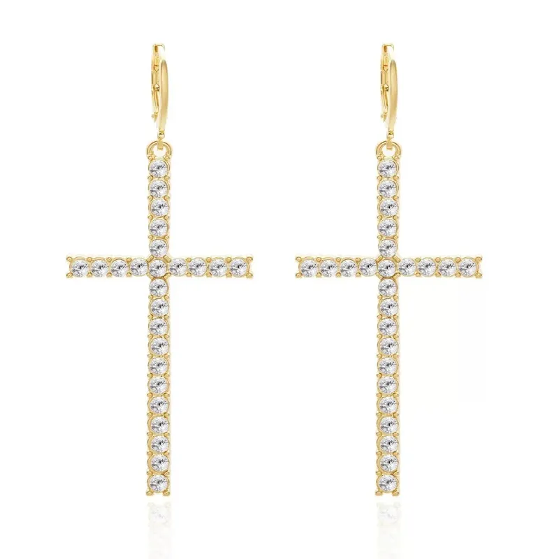 | Color | Gold Pearl Big Cross Earrings, Gold Rhinestone Large Cross Earrings, Silver Pearl Big Cross Earrings, Silver Rhinestone Large Cross Earrings |