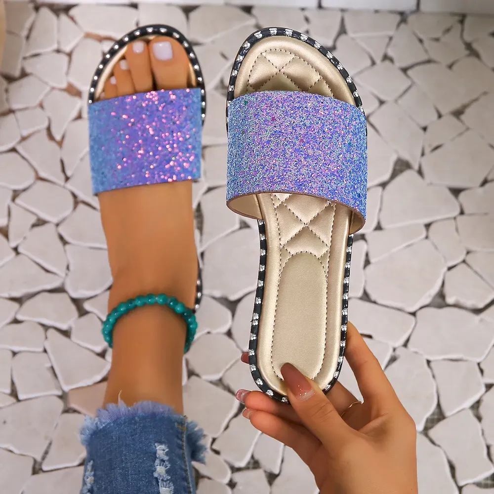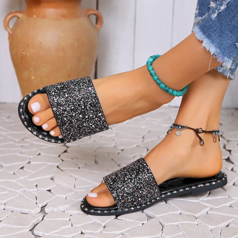 Women Fashion Casual Solid Color Sequins Round Toe Flat Slippers – Premium Fashion Apparel for Modern Life
