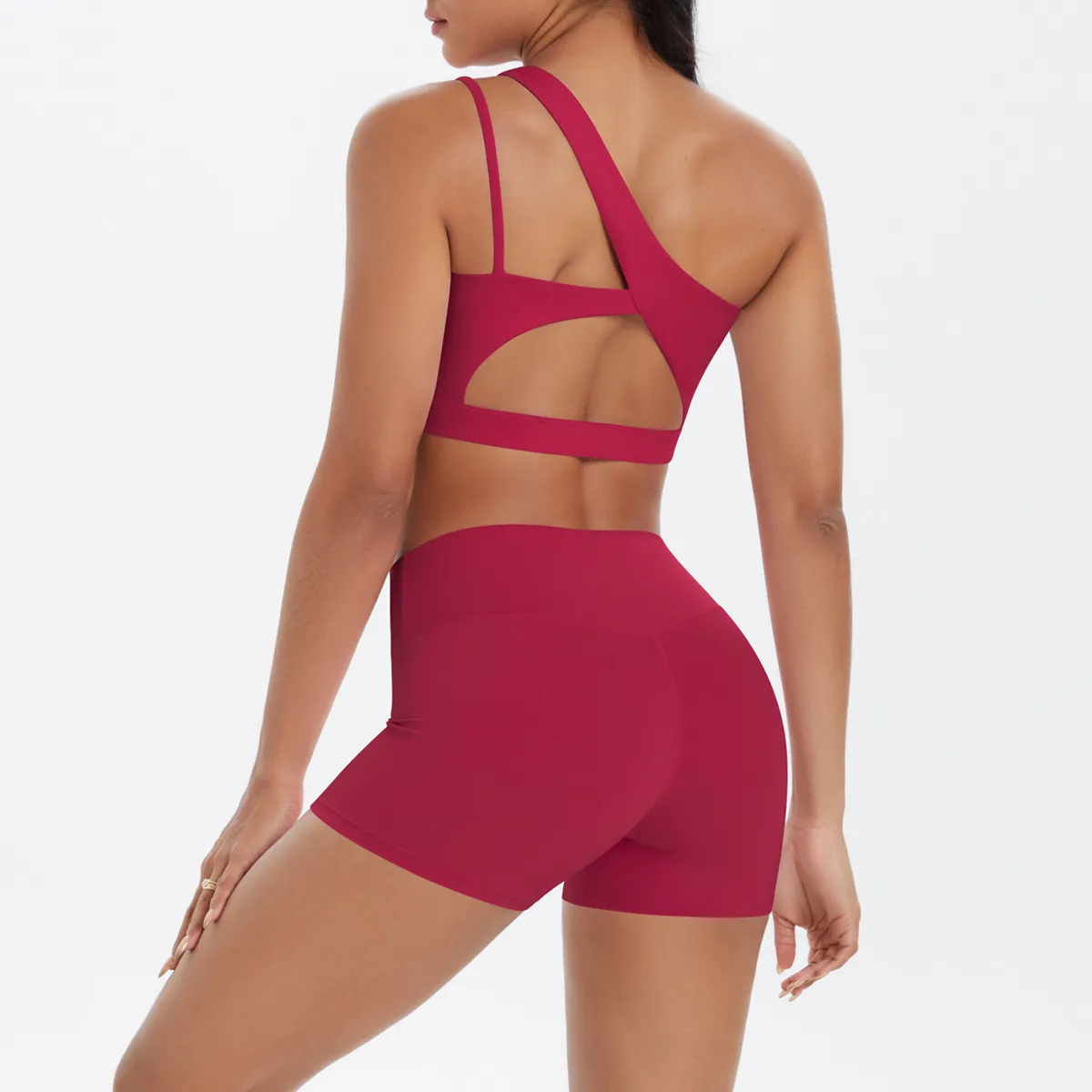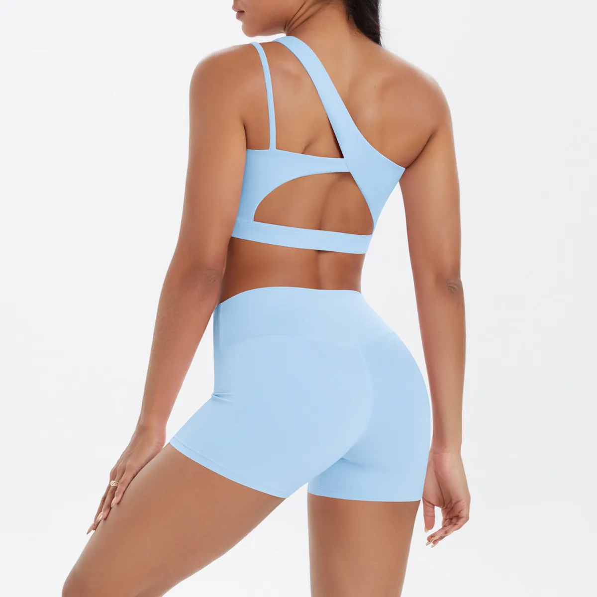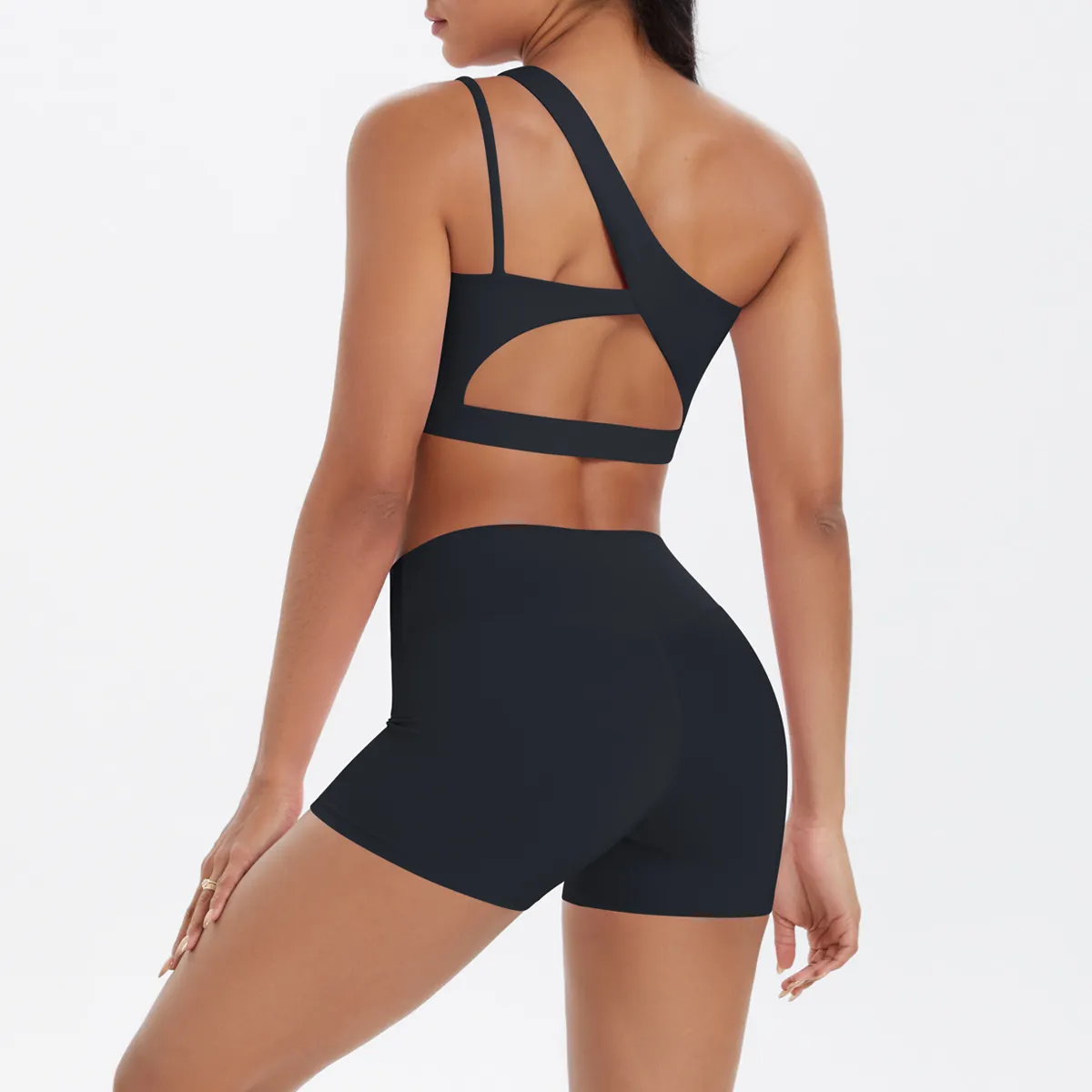 Women Fashion Casual Solid Color Slanted Shoulder Tank Top Tight Shorts Yoga Sports Two-Piece Set – Premium Fashion Apparel for Modern Life