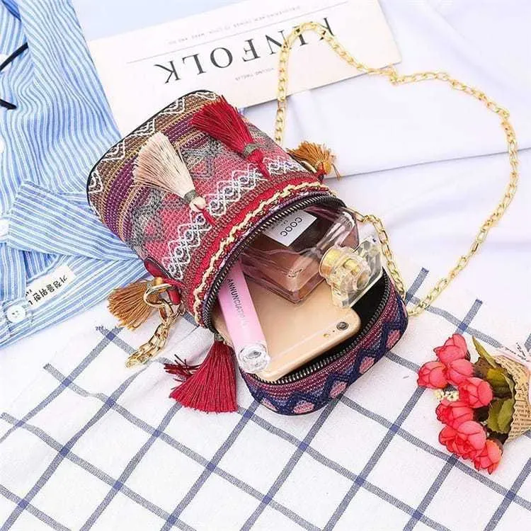 Women Fashion Color Blocking Cylinder Chain Crossbody Bag – Premium Fashion Apparel for Modern Life