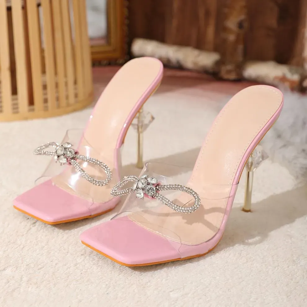 Women Fashion Elegant Rhinestone Bowknot Square Toe High Heels Shoes – Premium Fashion Apparel for Modern Life