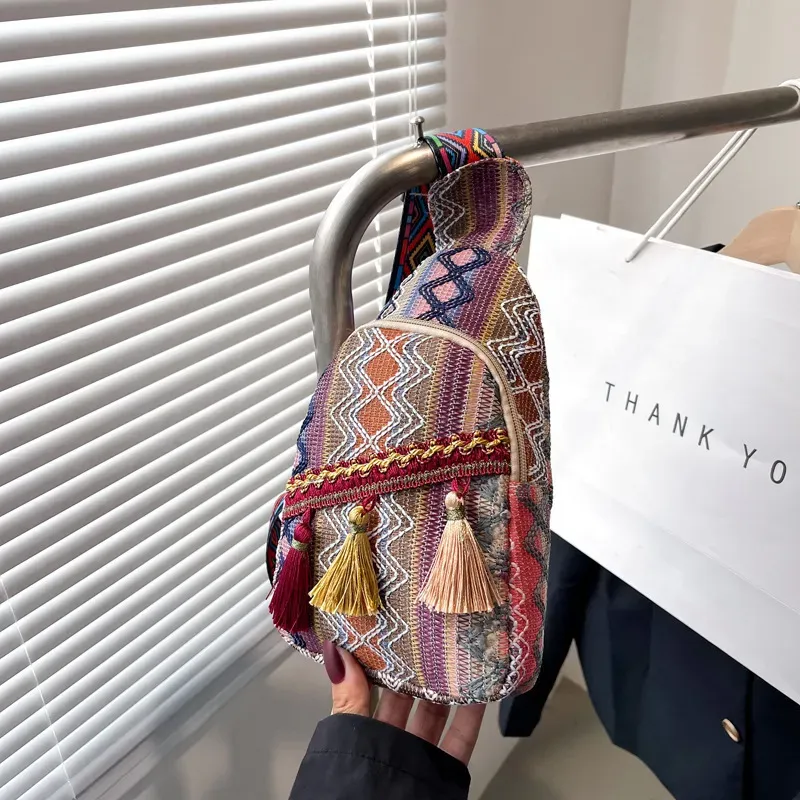 Women Fashion Ethnic Style Ribbon Tassel Pendant Chest Bag – Premium Fashion Apparel for Modern Life
