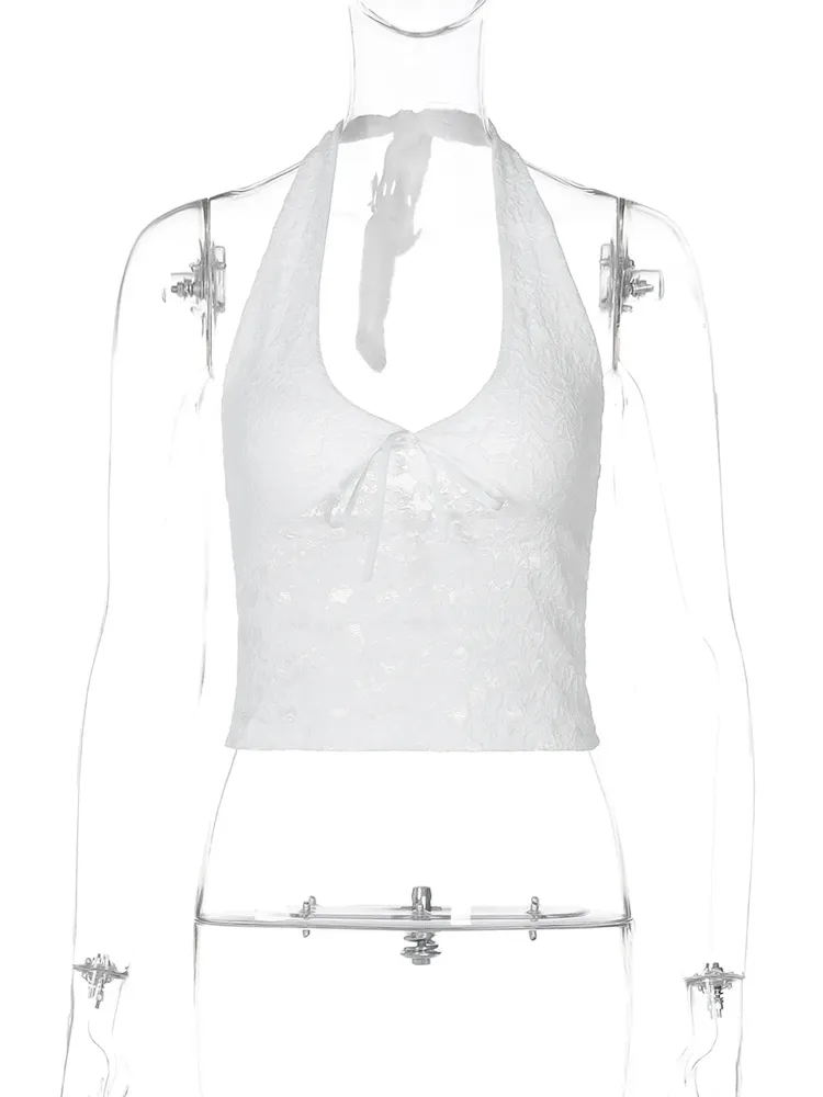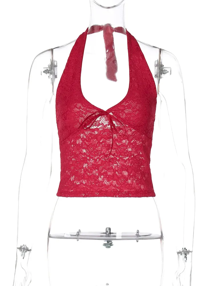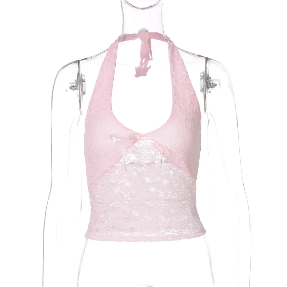 Women Fashion Sexy Solid Color Lace Perspective V-Neck Halter-Neck Tank Top – Premium Fashion Apparel for Modern Life