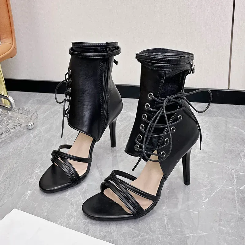Women Fashion Sexy Solid Color Peep-Toe Lace-Up High Heel Shoes
