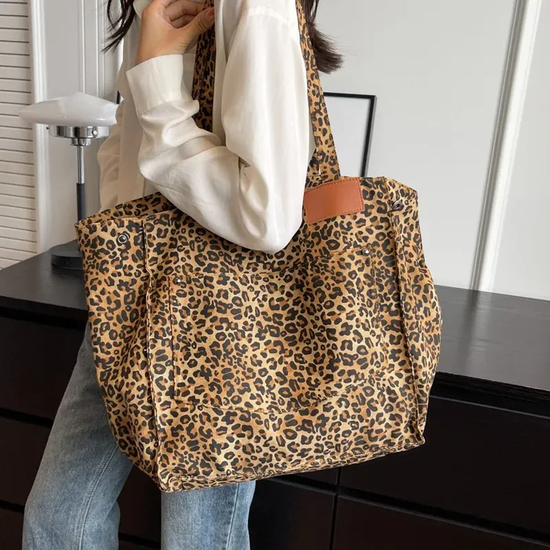 Women Fashionable Large Capacity Leopard Printed Canvas Tote Bag – Premium Fashion Apparel for Modern Life