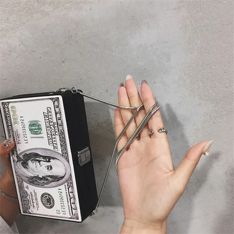 Women Retro Chain Strap Banknote Square Crossbody Bag